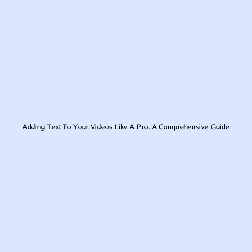 Adding Text To Your Videos Like A Pro: A Comprehensive Guide