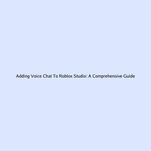 Adding Voice Chat To Roblox Studio: A Comprehensive Guide