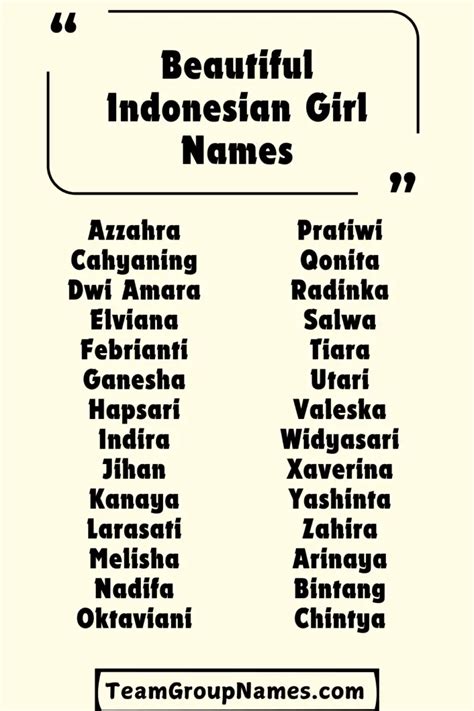When we talk about popular Indonesian girl names , we’re often looking at a blend of traditional and modern choices. Many parents love names that have beautiful meanings, often related to nature, virtues, or religious significance. For instance, Aisyah is a really popular name, derived from Arabic, meaning ‘living’ or ‘prosperous’. It’s a name with strong historical ties, famously belonging to one of Prophet Muhammad’s wives. Then there’s Dewi , which means ‘goddess’ in Sanskrit. It’s a classic choice that evokes elegance and divinity. Another common pick is Putri , meaning ‘daughter’ or ‘princess’. It’s simple yet regal, and often used as a first name or a title. Nur , also from Arabic, signifies ‘light’. It’s a short, sweet, and universally understood name that brings a sense of brightness. In the realm of Javanese names, you’ll find gems like Siti , which often means ‘lady’ or ‘noblewoman’, and Ratna , meaning ‘jewel’. These names have a timeless quality to them. Hana is another name gaining traction, meaning ‘flower’ in Javanese and sometimes ‘happiness’ in other cultures. It’s delicate and lovely. When you consider names like Indah , it literally translates to ‘beautiful’ in Indonesian – how perfect is that? Kartika means ‘star’, which is just magical, isn’t it? And Wulan , meaning ‘moon’, adds a touch of celestial charm. These names aren’t just pretty sounds; they carry deep cultural significance and often represent wishes for a child’s future – prosperity, beauty, and a life filled with light. It’s fascinating how names can hold so much power and meaning, and Indonesian culture certainly embraces this beautifully. So, whether you’re looking for something classic or a bit more unique, the Indonesian naming landscape has got you covered, guys.
