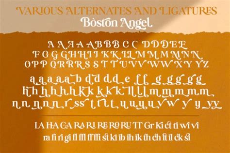 Let’s break down the Boston Angel font and talk about its defining features. First off, it’s a script font , which means it mimics handwriting. But it’s not just any handwriting; it’s like the fancy kind you see on old love letters or elegant wedding invitations. The letters flow smoothly into each other, creating a beautiful, unbroken line of text. This connectedness is a hallmark of good script fonts, and Boston Angel nails it. Another key characteristic is its elegance and sophistication . The curves are smooth, the lines are clean, and there’s a certain grace to every character. It feels polished and refined, never messy or unprofessional. We’re talking about calligraphic influences here, with varying stroke widths that give it that classic, hand-lettered feel. You’ll notice the delicate flourishes – subtle swashes and decorative elements that add personality without being overwhelming. These aren’t just random additions; they’re strategically placed to enhance readability and visual appeal. When choosing a script font, legibility is super important, and Boston Angel strikes a great balance. While it has decorative elements, the core letterforms are still clear and easy to read, which is crucial for any design. It often includes a range of ligatures and alternate characters , too. Ligatures are special combinations of letters that are designed to look better together (like ‘th’ or ‘ae’), and alternates are different versions of letters you can use to add even more variety and personal flair. These extras allow you to customize the look of your text and ensure a truly unique result. The overall impression is one of timeless beauty and romance , making it ideal for projects where you want to evoke strong emotions or a sense of luxury.