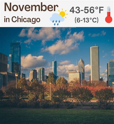 First off, let’s talk about the average conditions. When we look at the Chicago November weather , we’re generally talking about cooler temperatures and a significant increase in the chances of precipitation compared to October. The average daily temperature in November hovers around the mid-40s Fahrenheit (about 7 degrees Celsius), with highs typically in the low 50s and lows dipping into the high 30s. Now, these are averages, guys, and Chicago is famous for its unpredictable weather. You can easily experience warmer spells that feel like a lingering autumn, or get hit with a cold snap that feels like winter has already arrived. So, packing layers is absolutely key. Think t-shirts, long-sleeved shirts, sweaters, and a good, warm jacket. Don’t forget a hat, scarf, and gloves – especially for those evenings and early mornings. The wind is also a major factor in Chicago, earning it the nickname “The Windy City” for a reason. That wind can make even a mild temperature feel much colder, so factor that into your clothing choices. You’ll want something windproof, for sure.