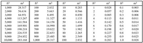 • The conversion factor is approximately 0.0283168 m³/ft³ (or 35.3147 ft³/m³ ).