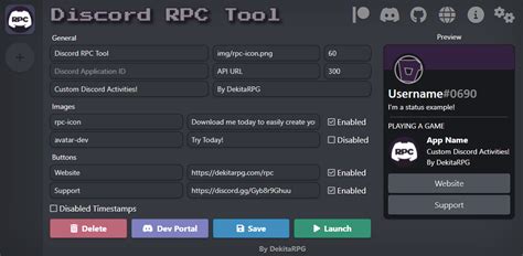 • Web-Based Solutions: There are some web-based solutions that allow you to create custom RPC statuses. These solutions typically involve creating a web server that interacts with the Discord API.