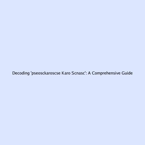 Decoding 'pseosckaroscse Karo Scnasc': A Comprehensive Guide