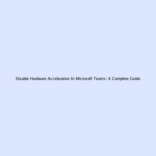 Disable Hardware Acceleration In Microsoft Teams: A Complete Guide