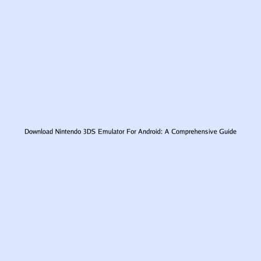 Download Nintendo 3DS Emulator For Android: A Comprehensive Guide
