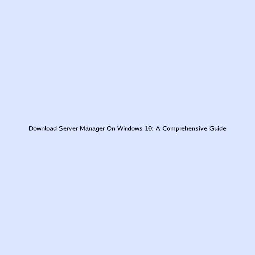 Download Server Manager On Windows 10: A Comprehensive Guide