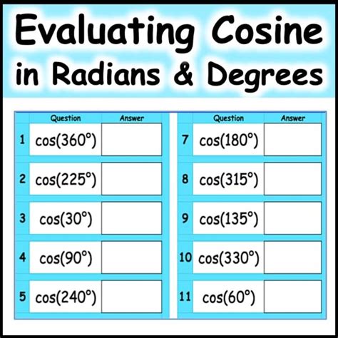 Evaluating Cosine Of 120 Degrees