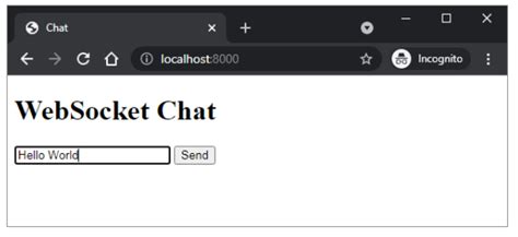 The sendMessage function is called when the user clicks the “Send” button. It gets the message from the input field, sends it to the server using websocket.send(message) , and clears the input field. Now, open index.html in your browser. You should see a simple page with an input field and a button. Type a message and click “Send”. You should see the message echoed back to you in the messages div. Congratulations! You’ve successfully connected to your FastAPI WebSocket endpoint and sent a message!
