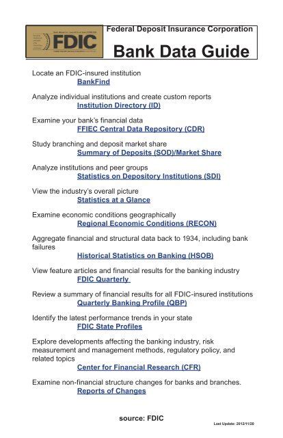 So there you have it, folks! The FDIC BankFind tool, accessed via ihttps banks data fdic gov bankfind , is an indispensable resource for anyone interested in the US banking system. It demystifies the world of finance by providing transparent, accessible data on FDIC-insured institutions. From confirming deposit insurance to analyzing a bank’s financial health and performance, BankFind empowers you with the knowledge to make informed decisions. Whether you’re safeguarding your personal savings, choosing a business banking partner, or simply staying informed about the economy, this platform serves as your reliable financial compass. Remember to utilize its search functions effectively, interpret the data thoughtfully by looking at trends and multiple indicators, and explore the advanced features for a deeper understanding. The FDIC’s commitment to transparency shines through this tool, fostering trust and stability in our financial system. So, the next time you need reliable information about a bank, you know exactly where to turn. Keep exploring, stay informed, and make your financial journey a confident one with the power of FDIC BankFind at your fingertips! It’s a fundamental tool for financial literacy and consumer empowerment in the digital age.