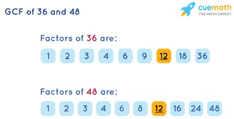 When we look at both lists, we see common factors . These are the numbers that appear in both lists. The common factors of 48 and 36 are 1, 2, 3, 4, 6, and 12. The greatest common factor (GCF) is the largest of these common factors, which in this case is 12. This tells us that 12 is the largest number that divides both 48 and 36 without leaving a remainder. Cool, right?