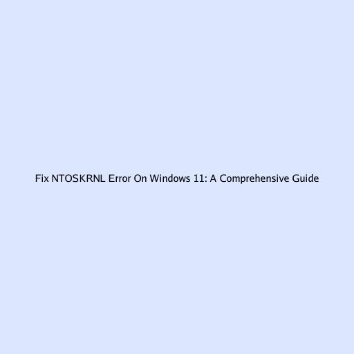 Fix NTOSKRNL Error On Windows 11: A Comprehensive Guide