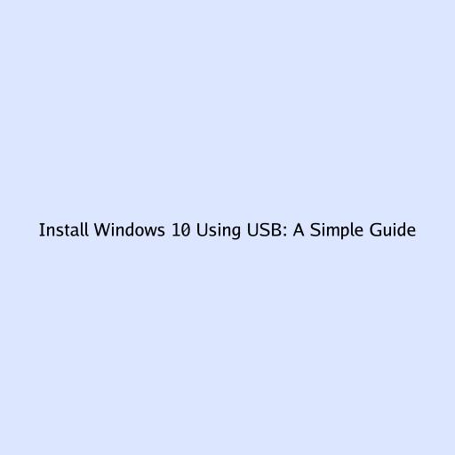 Install Windows 10 Using USB: A Simple Guide