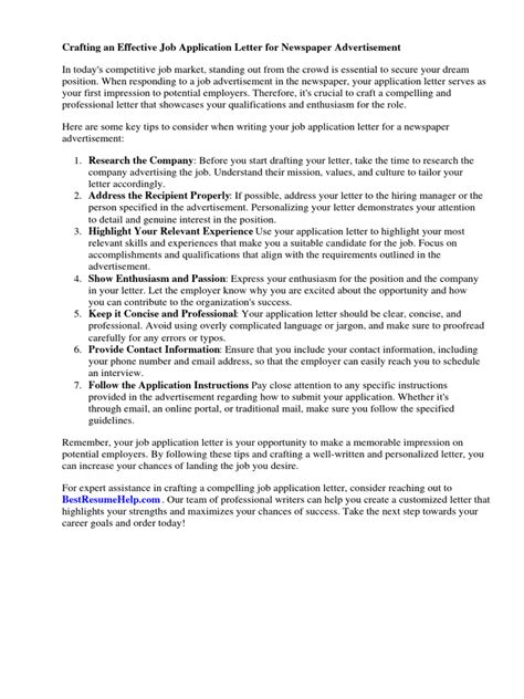 By understanding the advertisement, crafting a compelling cover letter, optimizing your resume, addressing specific requirements, submitting your application correctly, and following up appropriately, you’ll be well on your way to landing that job you saw in the local newspaper. So go get ‘em, tiger!