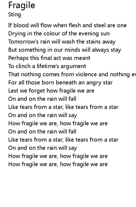 The bridge and outro of “Fragile” by Labrinth often provide a shift in perspective, even if it’s just a subtle one. After the raw admission of fragility in the chorus and the continued struggle in the verses, these sections can offer a moment of reflection or perhaps a tentative step towards acceptance. Sometimes, the lyrics might introduce a glimmer of hope, a realization that even in our fragility , there’s a certain strength. It’s the idea that acknowledging our weaknesses can, paradoxically, make us stronger. Or, it could be a plea for understanding and connection, a hope that someone else can see beyond the cracks and offer support. The outro might fade out with a repetition of the core theme, leaving the listener with a lingering sense of the song’s message, or it could end on a more resolved note, suggesting a tentative peace. The emotional arc of the song often culminates here, whether it’s with a sigh of acceptance, a renewed determination, or simply a shared moment of quiet understanding. It’s where the journey through vulnerability starts to find some semblance of closure, even if the underlying issues aren’t fully resolved. This part of the song is crucial because it shows that the narrative isn’t just about dwelling in the pain; it’s about navigating through it. The music itself often reflects this shift, perhaps becoming softer, more melodic, or building to a powerful, yet still vulnerable, crescendo. It’s that moment when you’re looking at the wreckage, but you can also see the possibility of rebuilding, even if it’s with different materials. The bridge can be the turning point, the moment where the artist finds a different way to articulate his feelings, perhaps looking outward for support or inward for a new perspective. And the outro? That’s the echo, the lasting impression the song leaves you with – a feeling of shared humanity, a recognition that we are all, in our own ways, fragile , and that’s okay.