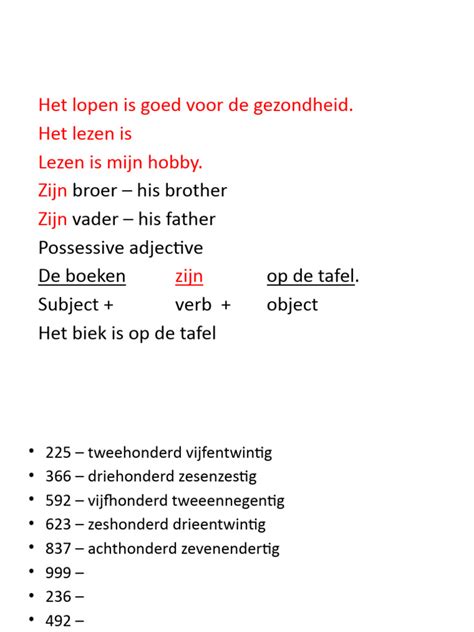 Alright, guys, let’s move on to the glue that holds sentences together: prepositions and conjunctions in Dutch grammar . These little words are absolute powerhouses! Prepositions, like ‘in’ (in), ‘op’ (on), ‘aan’ (at/to), ‘met’ (with), ‘voor’ (for/before), and ‘na’ (after), tell you about relationships between words – think location, time, direction, or manner. The tricky part is that Dutch prepositions don’t always map 1:1 with English. For instance, ‘op’ can mean ‘on’, but it’s also used for specific days (‘op maandag’ - on Monday) and even for things like ‘op school’ (at school). ‘Aan’ is often used for direction towards something or being attached to it. The best way to learn these is through context and lots of examples. Pay attention to how native speakers use them, and don’t be afraid to make mistakes – that’s how you learn! Conjunctions, on the other hand, are the connectors. They link words, phrases, or clauses. You’ve got coordinating conjunctions like ‘en’ (and), ‘maar’ (but), ‘of’ (or), ‘want’ (because/for), and ‘dus’ (so/therefore). These are pretty straightforward and usually don’t affect word order. For example: Ik ga naar de winkel en ik koop brood (I go to the shop and I buy bread). Then you have subordinating conjunctions like ‘dat’ (that), ‘omdat’ (because), ‘als’ (if/when), ‘terwijl’ (while), and ‘voordat’ (before). Remember these? These are the ones that send the conjugated verb to the end of the clause – a key feature of Dutch grammar we discussed earlier! Example: Ik blijf thuis omdat het regent (I stay home because it rains). Understanding when to use which conjunction and how it impacts sentence structure is vital. Mastering these seemingly small words will significantly boost your confidence and fluency in Dutch. They are the unsung heroes of Dutch grammar that allow you to express complex ideas and connect your thoughts seamlessly. Keep practicing, and soon you’ll be using prepositions and conjunctions like a native!
