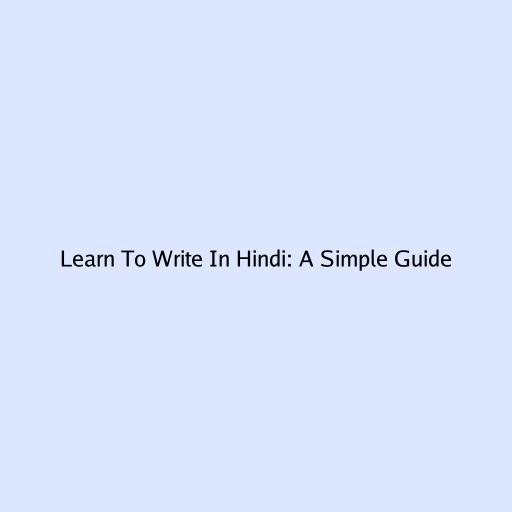 Learn to Write in Hindi: A Simple Guide