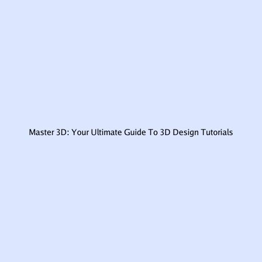 Master 3D: Your Ultimate Guide to 3D Design Tutorials