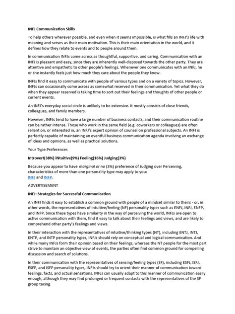 Hey everyone! Today, we’re diving deep into something super important for all you INFJs out there: INFJ communication skills . If you’re an INFJ, you probably already know that you tend to have a unique way of interacting with the world. You’re often described as the ‘Advocate’ or ‘Counselor,’ and that’s for a good reason! Your insightful nature, deep empathy, and desire for meaningful connections mean your communication style is often a bit different from the norm. But what does that really mean for how you connect with others? Let’s break it down.