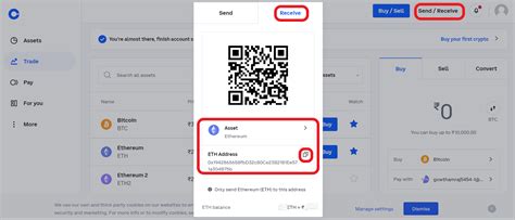 Entering the Coinbase ETH Address and Amount