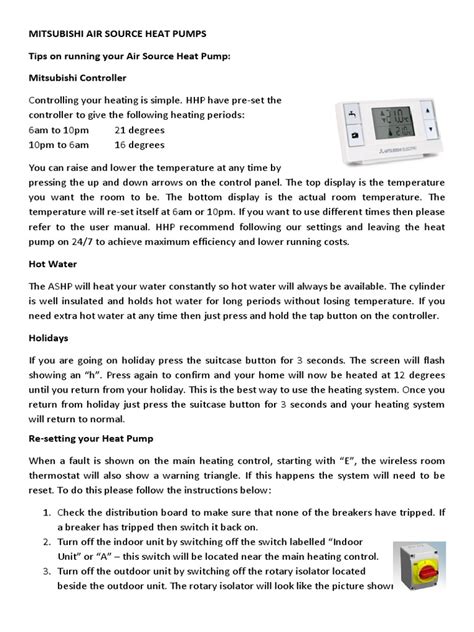 Mitsubishi Heater Settings Guide