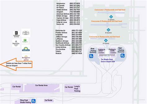 Beyond these essentials, a good Denver Airport map will also highlight other amenities that enhance your comfort. These include a diverse range of dining options , from grab-and-go cafes to full-service restaurants, often categorized by type (e.g., fast food, casual dining, bars). Retail stores for everything from books and magazines to souvenirs and high-end fashion are also prevalent. Furthermore, look for airline lounges , which offer a quieter, more comfortable environment for eligible passengers. For families traveling with young children, nursing rooms or baby care facilities are invaluable and are explicitly shown on the map.
