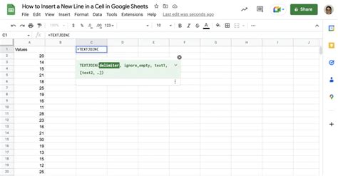 The most reliable way to insert a new line in Google Sheets is by using the CHAR(10) function. This function represents the line feed character, which tells Google Sheets to start a new line. Here’s how you can use it: