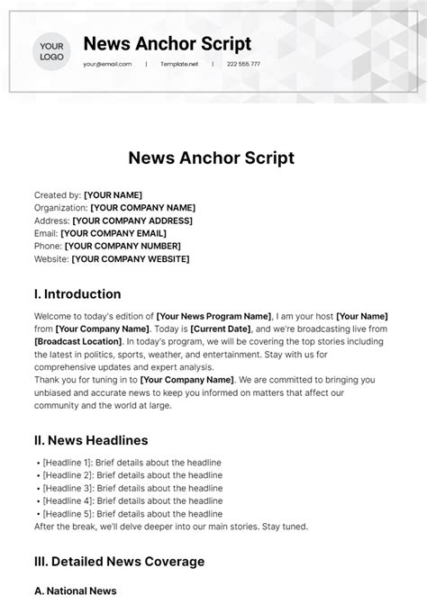 Thirdly, a news anchor script helps you understand the flow of a news broadcast . News isn’t just a random collection of stories; it’s a carefully curated sequence designed to inform and engage viewers. By working with a script, you’ll learn how stories are introduced, how transitions are handled, and how to keep the audience hooked. It’s almost like learning the secret language of news!