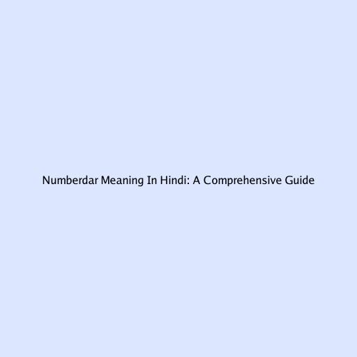 Numberdar Meaning In Hindi: A Comprehensive Guide