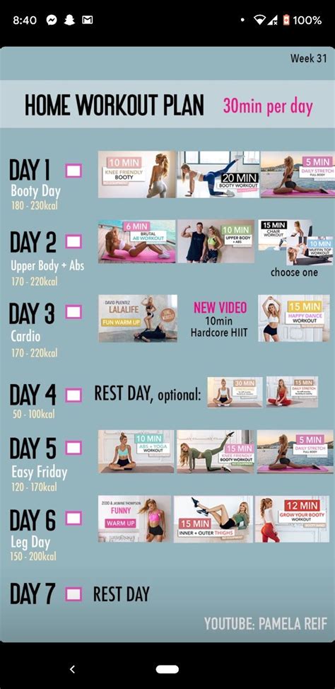 Let’s get into the nitty-gritty of actually following the Pamela Reif 30-Day Workout Challenge schedule. Pamela is known for her well-structured monthly workout plans, typically released on her YouTube channel. These plans are usually laid out as a calendar, assigning a specific type of workout or rest day for each day of the month. This structured approach is one of the major reasons why her challenges are so effective – they eliminate the decision fatigue of figuring out what to do each day. When you get your hands on the monthly calendar, the first thing you should do is familiarize yourself with it. You’ll notice a mix of workout types: often full-body strength, lower body, upper body, abs, and sometimes cardio or flexibility sessions. Crucially, you’ll also see designated rest days. These are not optional , guys! Rest is when your muscles repair and grow stronger. Pushing yourself relentlessly without adequate recovery can lead to burnout and injury, defeating the purpose of the challenge. So, mark those rest days on your calendar and treat them with the same importance as your workout days. Now, about the workouts themselves. Pamela’s videos are typically concise and to the point, often ranging from 10 to 30 minutes. This makes them incredibly manageable, even on the busiest days. She usually provides a timer on the screen and clear demonstrations of each exercise. The format is often circuit-based, meaning you move from one exercise to the next with minimal rest in between, making the workouts intense and efficient. When you start a workout, pay close attention to Pamela’s form cues. She’s excellent at explaining proper technique, which is vital for both effectiveness and injury prevention. If you’re a beginner, don’t be afraid to slow down the video or pause it to ensure you’re doing the movements correctly. It’s far better to do fewer reps with perfect form than many with sloppy form. On the other hand, if you’re finding a particular exercise too easy, you can increase the challenge by adding more repetitions within the given time, holding the contraction longer, or slightly increasing the range of motion if your form allows. Some users also incorporate light weights or resistance bands into Pamela’s routines, especially for strength-focused days, to further increase the intensity. Remember that consistency is the name of the game. Try your best to stick to the schedule as closely as possible. If you miss a day, don’t beat yourself up about it. Just pick up where you left off or adjust the schedule slightly to fit it in. The goal is progress, not perfection. Some people find it helpful to do the workouts in the morning to get them out of the way, while others prefer evenings. Find a time that works best for your lifestyle and energy levels. The key is to make it a non-negotiable part of your day, just like brushing your teeth. You’re committing to 30 days of movement, and sticking to the schedule is your roadmap to achieving your goals. Embrace the challenge, trust the process, and enjoy the journey of becoming a fitter, stronger you!