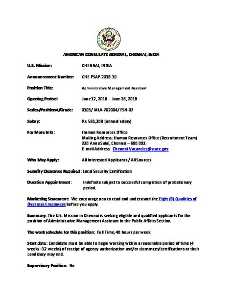 • Administrative Experience: Prior experience in an administrative or customer service role is highly desirable. This could include experience in an office setting, a government agency, or an international organization. The more experience you have, the better equipped you’ll be to handle the demands of the job.