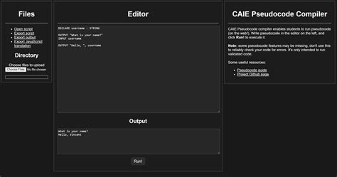 • Code Playground with Pseudocode Support: You can use code playgrounds that allow you to write and execute code in your browser. These platforms may not have a dedicated pseudocode compiler, but they still provide a place to write and test your code.