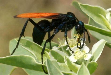Identifying tarantula hawk wasps is pretty straightforward once you know what to look for. These wasps are quite large, often reaching up to 2 inches in length, making them one of the biggest wasp species around. Their size alone can be a key identifier. The tarantula hawk wasp has a striking appearance that makes it easily recognizable. Their bodies are typically a dark, metallic color, often black or blue-black. This dark coloration contrasts sharply with their bright orange or reddish-orange wings. The combination of the dark body and vibrant wings is a dead giveaway. The wings of the tarantula hawk wasp are not only colorful but also quite distinctive in shape. They have a wrinkled or crinkled appearance, which is another helpful characteristic for identification. Pay close attention to the wing venation, the pattern of veins in the wings, which can also be a useful feature for distinguishing them from other wasps. Besides their size and coloration, the tarantula hawk wasp also has a unique body structure. They have long, slender bodies with powerful legs designed for grappling with tarantulas. Their antennae are relatively short and slightly curved. The females have a stinger at the end of their abdomen, which they use to paralyze their prey. The males, on the other hand, do not have a stinger. When identifying tarantula hawk wasps , it’s also helpful to consider their behavior. These wasps are solitary creatures, meaning they don’t live in colonies like honeybees or yellowjackets. You’ll typically see them flying around alone, often close to the ground, searching for tarantulas. They are most active during the day, especially in warm, sunny weather. If you spot a large, dark wasp with orange wings dragging a tarantula across the ground, there’s no doubt you’ve found a tarantula hawk wasp . Keep in mind that there are other types of spider wasps, but none are as large or have the same distinctive coloration as the tarantula hawk wasp . By paying attention to their size, color, wing appearance, and behavior, you can easily identify these impressive insects. Always observe them from a safe distance, as their sting is notoriously painful. Understanding how to identify tarantula hawk wasps is not only interesting but also useful for knowing what to expect if you encounter one in your backyard or while hiking.