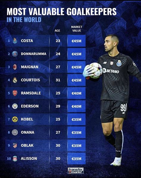 • Benchmarking Performance: The rankings provide a way to benchmark the performance of goalkeepers against each other. By comparing their Transfermarkt values, you can get a sense of who’s considered to be the most valuable and in-demand goalkeeper in the world.