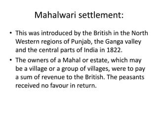 Alright, let’s zero in on the Mahalwari Settlement , because this is where the concept of mahal truly shines and becomes the absolute cornerstone of the revenue system. When we talk about British revenue policies in India, the Mahalwari system stands out, especially in regions like the North-Western Provinces, Agra, Punjab, and parts of Central India. Unlike the Permanent Settlement, which fixed revenue in perpetuity for zamindars, or the Ryotwari system, which dealt directly with individual peasant proprietors, the Mahalwari system focused on the village community as a whole . The term ‘Mahalwari’ itself comes from ‘mahal’, reinforcing its centrality. In this setup, the mahal – the village or a group of villages treated as a unit – was assessed for land revenue . The responsibility for paying the revenue wasn’t individual; it was collective. The village community, or the village headman (often called the Lambardar or Patwari), was responsible for collecting the revenue from the individual cultivators within the mahal and then paying the lump sum to the government. This had some interesting implications, guys. On the one hand, it preserved to some extent the traditional village governance structures, as the community had a stake in ensuring compliance. It also meant that the revenue demand could be adjusted periodically based on the productivity of the mahal, offering some flexibility compared to the Permanent Settlement. However, it also introduced new pressures. The headman, acting as the revenue intermediary, could sometimes exploit his position. Moreover, if the mahal couldn’t meet the revenue demand, the entire village community was liable, leading to potential hardship and land alienation if they defaulted. The British revenue officials would conduct regular settlements, often for periods of 20-30 years, during which the revenue demand for the mahal was fixed. These settlements involved detailed surveys, classification of soils, and assessment of rents based on estimated yields. The aim was to ensure a steady and predictable flow of revenue to the colonial exchequer. So, when you’re studying British revenue history, remember that the Mahalwari Settlement is a prime example of how the mahal was the fundamental unit of assessment and collection, shaping the agrarian relations and the economic landscape of vast tracts of British India. It’s a system that deeply impacted the lives of millions by redefining their relationship with the land and the state through the lens of the village as a collective entity.