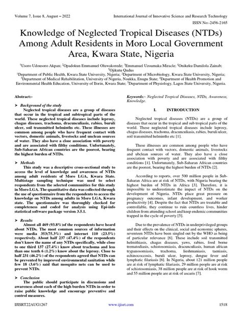 These diseases are caused by a variety of pathogens, including viruses, bacteria, protozoa, and helminths (parasitic worms). They are often transmitted through vectors like mosquitoes, flies, or snails, or through contaminated food, water, or soil. Because NTDs thrive in conditions of poverty, poor sanitation, and limited access to healthcare, these diseases create a vicious cycle of poverty and illness, hindering socioeconomic development.