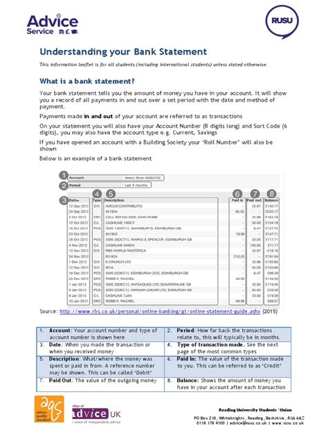 • Header: The header usually includes the bank’s name, your account number, and the period covered by the statement (e.g., January 1st to January 31st). It also includes your personal details, such as your name and address. This is the basic information to identify your account.