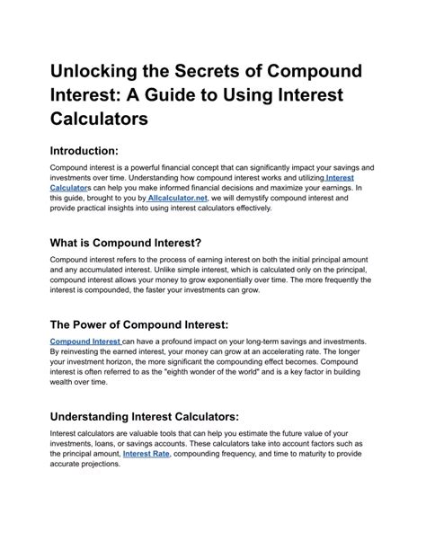 Unlocking The Secrets Of Compound Interest: Your Guide