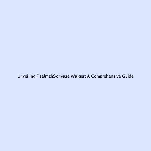 Unveiling PselmzhSonyase Walger: A Comprehensive Guide