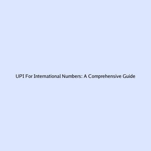 UPI For International Numbers: A Comprehensive Guide