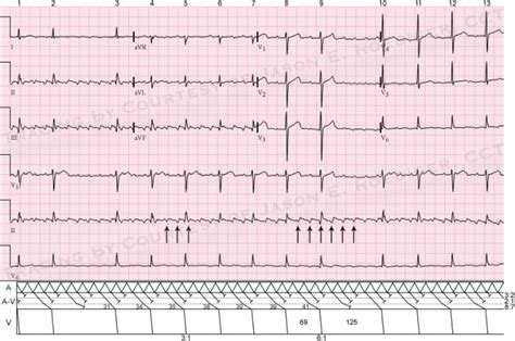 • Electrocardiogram (ECG or EKG): This is the gold standard for diagnosing Wenckebach syndrome . An ECG is a non-invasive test that records the electrical activity of your heart. The characteristic pattern of a progressively lengthening PR interval followed by a dropped QRS complex is the hallmark of Wenckebach syndrome .