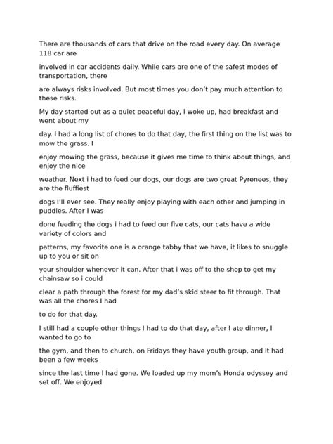Now for the crucial part: the narrative of the accident . This is where you describe the sequence of events. Write this from your perspective, but stick strictly to the facts . What were you doing? What did you see the other vehicle(s) doing? What happened leading up to the impact? Describe the impact itself. What happened immediately after? Use clear, chronological order. You can break this down into smaller paragraphs if it helps clarity. For example, “Before the accident, I was traveling eastbound on Main Street at approximately 30 mph. The traffic light at the intersection of Main and Elm was green for my direction. As I entered the intersection, a blue sedan traveling northbound on Elm Street failed to stop at the stop sign and entered the intersection, striking my vehicle on the driver’s side.” Clarity and chronology are your best friends here.